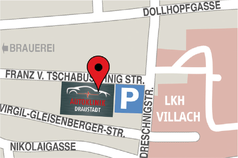 Sie finden uns zwischen dem LKH Villach und der Brauerei in der Franz-von-Tschabuschnig-Straße